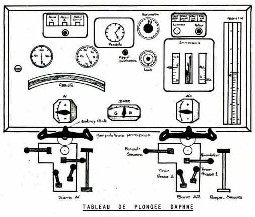 Pour plonger, après avoir rempli les ballasts, on utilise des barres de plongée pour changer d'immersion. Pour manœuvrer ces barres, le barreur de plongée pilote l'immersion à l'aide du tableau de plongée. Ce tableau, en plus des informations nécessaires au barreur, donne d'autres paramètres pour le patron de central qui se tient debout derrière le barreur de plongée. L'heure, l'immersion, les angles de barres de plongée mais également un répétiteur d'angle de barre de direction, la pression barométrique, la vitesse, l'assiette, divers lumineux de contrôle, etc... Le patron de central supervise la tenue du sous-marin en plongée à tous les niveaux.