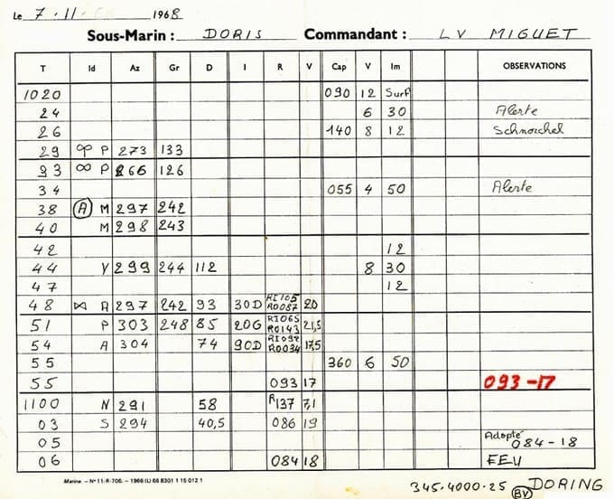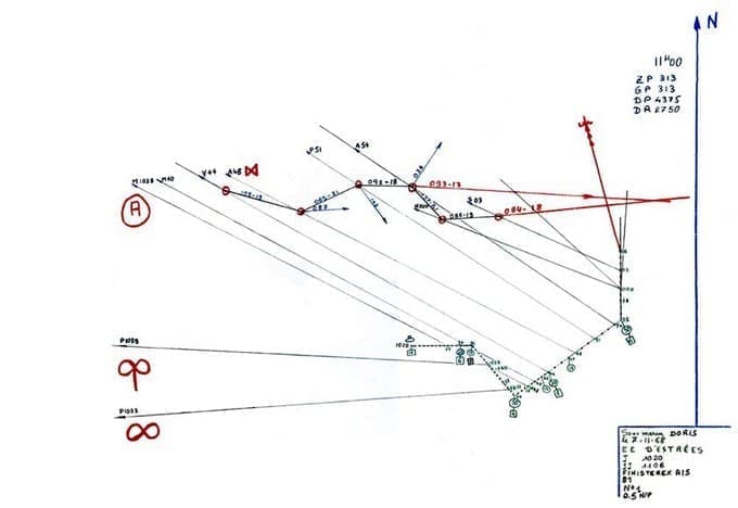 sur un calque le déroulement de l'activité du sous-marin, cela s'appelle le plot.