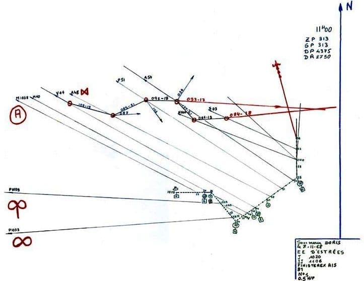 Lors de son déplacement, un bâtiment à la mer consigne sur un calque tous les événements (ordres, déclarations et événements divers) en temps réel. Ceci est réalisé par la personne en charge à la table de plot au Centre Opérationnel où se trouvent tous les éléments de visualisations (périscopes, radar, Sonar, APA, etc...), d'écoute (groupement microphonique etc...) et les calculateurs. On retrouve sur ces documents l'histoire de chaque déplacement du bâtiment depuis son départ jusqu'à son retour à quai. Il est évident que l'échelle utilisée est adaptée en fonction des événements en cours (déplacement normal, combat et autres).