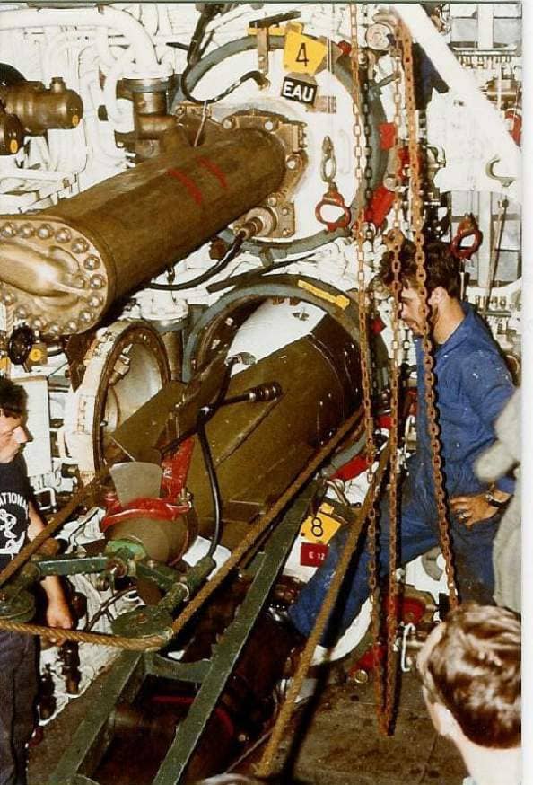 Vue sur les tubes lance torpilles arrières de l'Eurydice (†).